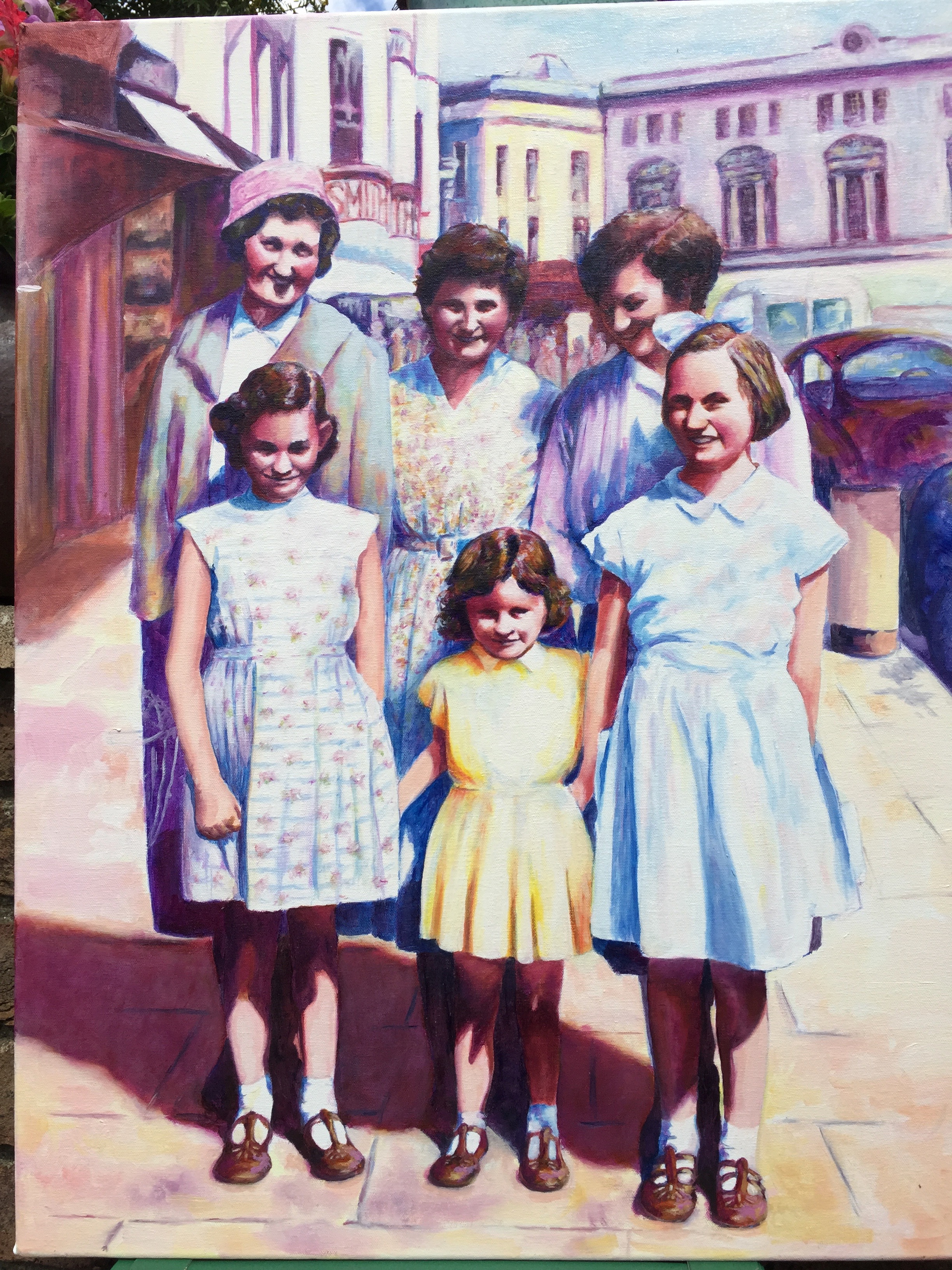These photos are in so many family albums and my idea was to present them as a series of paintings for the people of the city to enjoy. I asked around and the response was overwhelming with photos coming at me from all over and people more than happy to share their family stories.