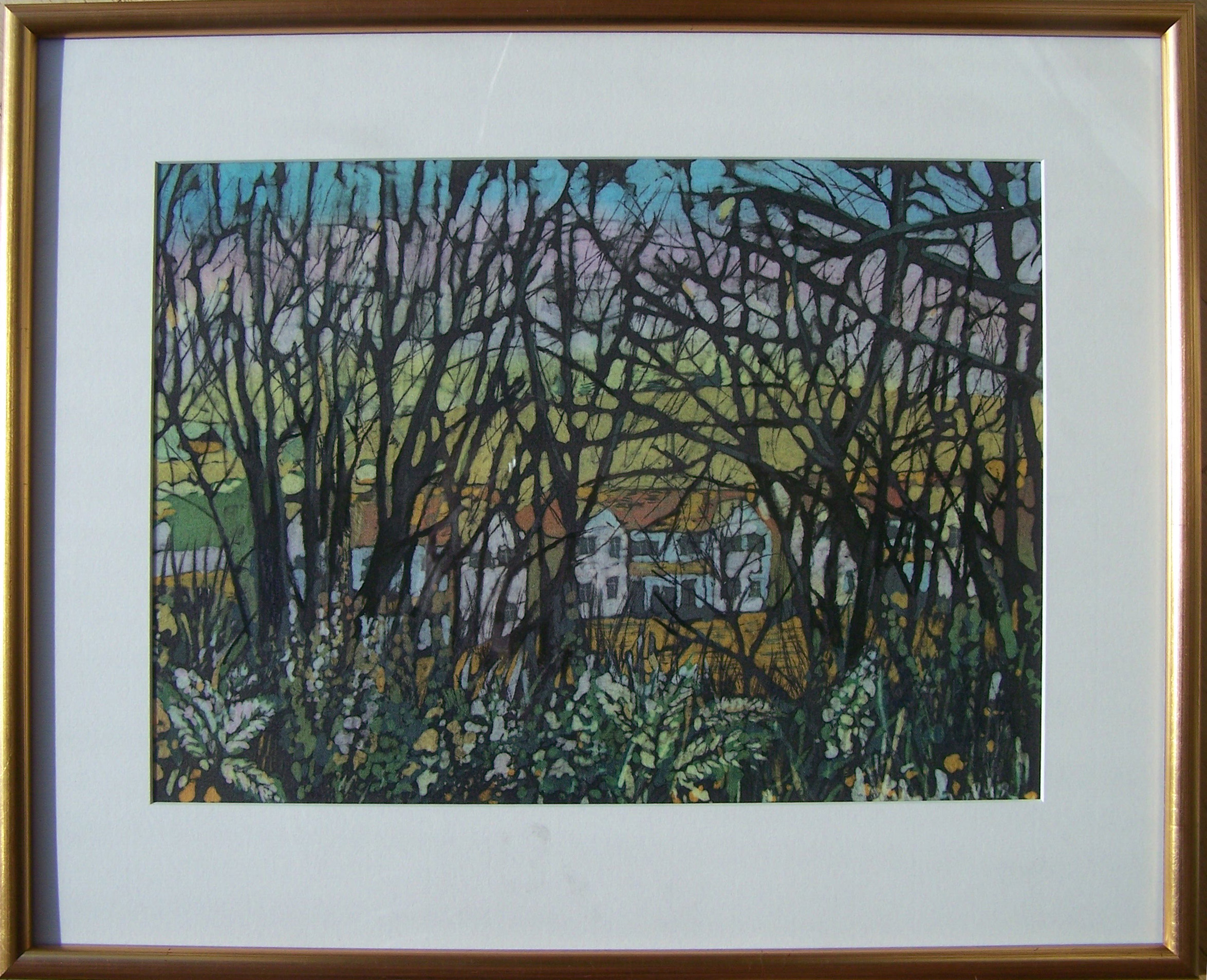 The railway walk meanders along by the waterside and the boats of Drakes Pool but the winter trees with views of the village and the houses seen through the tangle of the bare branches in the woodlands around Templebreedy became the main inspiration for my workthat year.